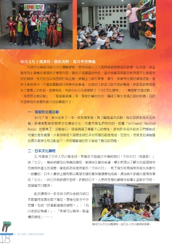生了實質上的助益。這學期起,外語中心已先後舉辦了「日本文化課程」、「萬聖節主題活動」、